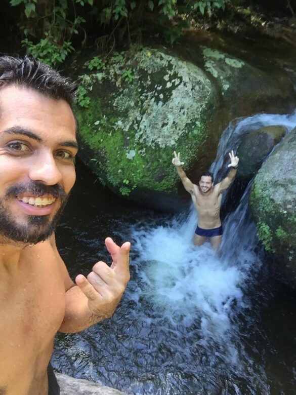 A cachoeira tem um “tobogã” natural por onde dá para deslizar até o poço. As pessoas que fugiram do primeiro poço, que costuma ficar bem movimentado, preferem ficar nessa cachoeira, mas, se para você ainda não é o bastante, dá para continuar.