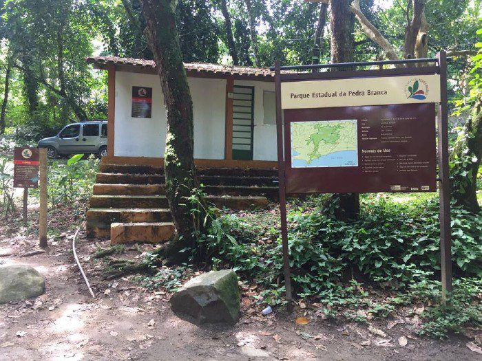 A trilha começa logo após a guarita. O caminho é bem demarcado, mas não há sinalização alguma, portanto fique bem atento para não se perder.